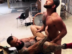 Hung twink fucks hairy tatted daddy bareback with big dick