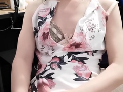 Skinny ladyboy in pink nightie strips and jerks off until